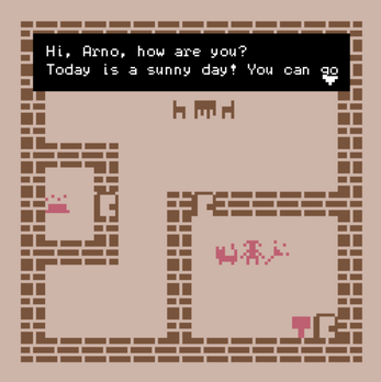 In addition, although maybe just because I don't know how to do dialog choices using this engine yet, but by having no dialog at all for the main character(which means that the player do not have any dialog choice, they cannot say anything but the NPCs can), the player can think and reflect more freely, not limited their thoughts by the dialog choices.